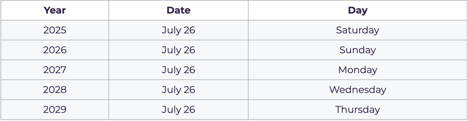 - Date: Annually on July 26