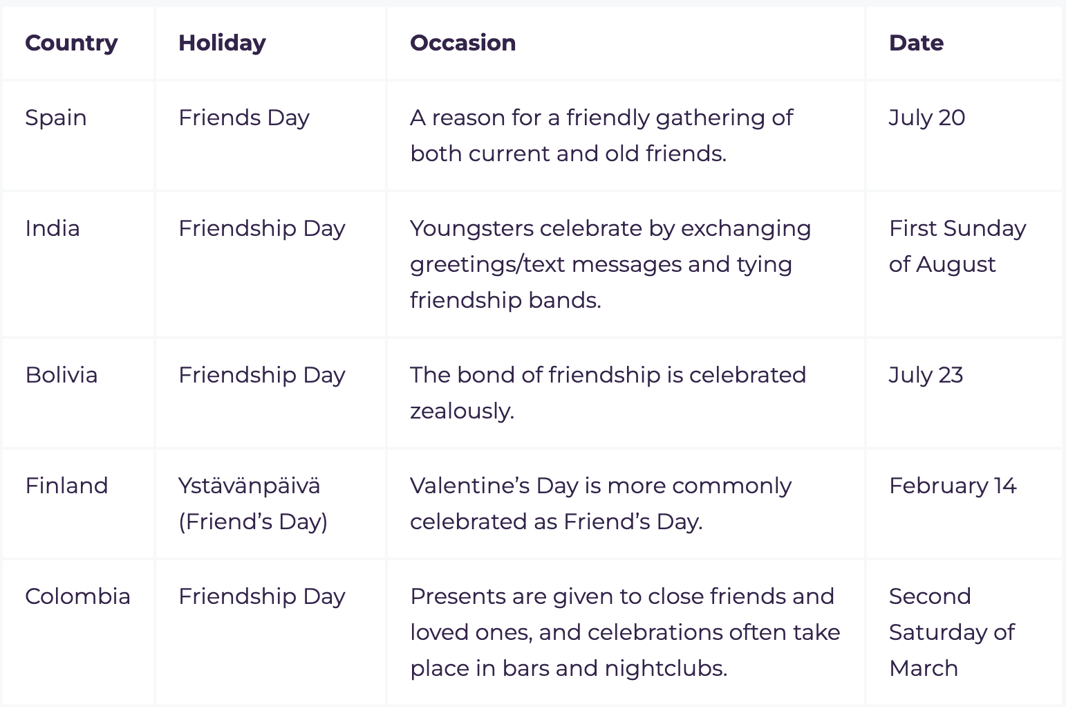 - International Friendship Day (last Sunday in July in many countries)
