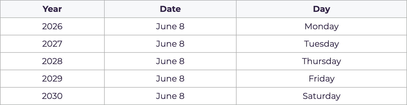 It is celebrated on June 8th every year.